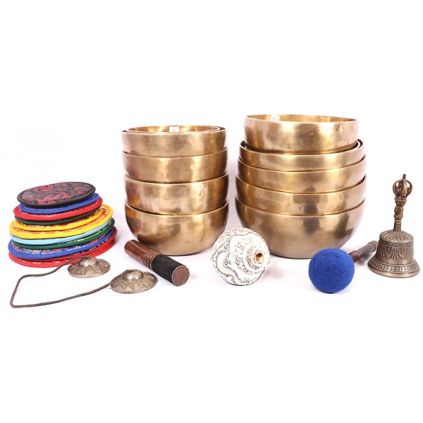 This is special Planetary Singing bowls Set tuned in Planetary Base. It is complete set for a professional Therapist/ Healer which has 11 Planetary, Therapeutic bowls and used to do HertzTherapy, Cosmic Sound Therapy or Sound Healing. It is recommended and suggested also for Chakra healing/therapy. There are 7 Chakras (energy centers) in human body. Each chakra reacts to balance certain energies. This set bowl will help to balance and solve the problems of related chakras. It produces relaxation, removes stress, anxiety, fear, uncertainty and more.